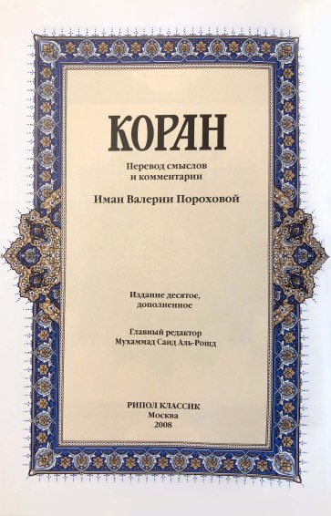 М.: Рипол-Классик. 2008 г. Перевод смыслов и комментарии Иман Валерии Пороховой. Издание десятое. Главный редактор Мухаммад Саид Аль-Рошд.