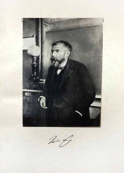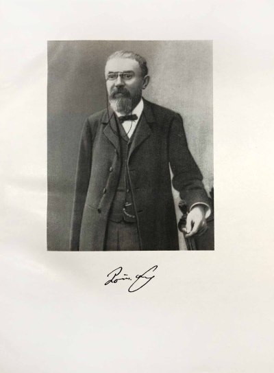 Книга в цельнокожаном переплете ручной работы с тиснением и иллюстрацией на передней переплетной крышке. Футляр.