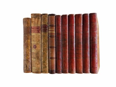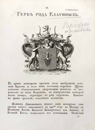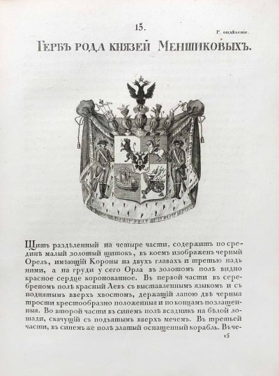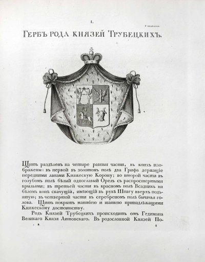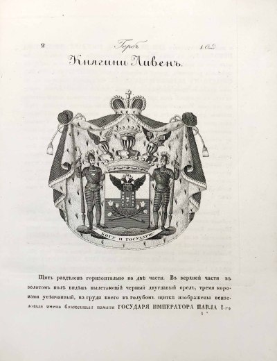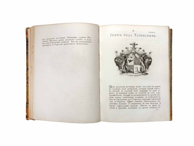 Книги в цельнокожаных переплётах начала XIX века. Черно-белые гербы исполнены техникой медной гравюры высокого художественного уровня.