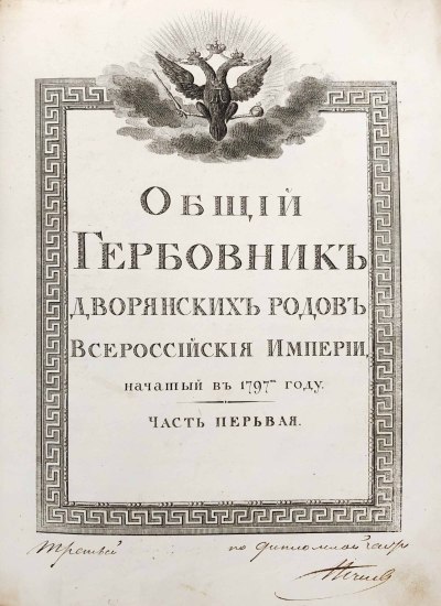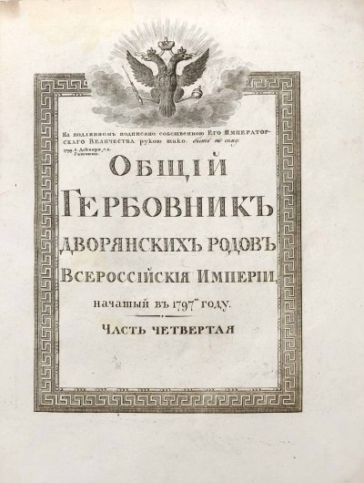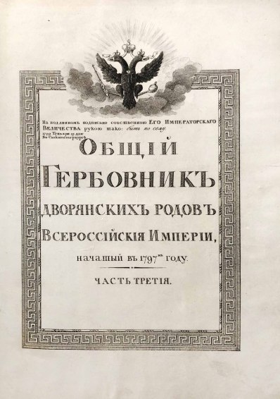 Общий гербовник дворянских родов Российской империи — официальный свод гербов дворянских семей, утвержденный императором Павлом I в 1797 году. Согласно указу, каждый дворянский род обязан был подать в Герольдию эскизы своего герба, описание и краткое родословие. Оформленные художником рисунки собирались в книги, содержащие примерно 150–180 гербов и делившиеся на три раздела: первая часть включала титулы и древнее дворянство, вторая — пожалованные императорским указом роды, третья — служилое дворянство.