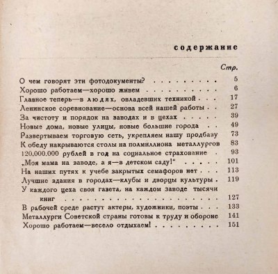 Сборник «Металлурги Советской страны» представляет собой уникальную визуальную хронику жизни советских металлургов первой половины ХХ века. Эта публикация наполнена ценнейшими фотографиями рабочих заводов, цехов, производственных процессов и быта работников металлургической отрасли Советского Союза периода индустриализации.