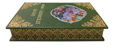 В цельнокожаном переплете ручной работы с тиснением золотом и иллюстрацией. Иллюстрированные обрезы.