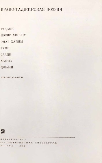 В настоящем томе представлены образцы поэзии, созданные на языке фарси в классическом периоде (X—XV века) семью поэтами: Рудаки, Носиром Хисроу, Омаром Хайямом, Руми, Саади, Хафизом и Джами.