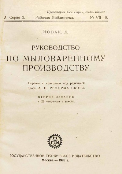 Книга представляет собой детальное пособие, посвященное искусству и науке изготовления мыла. Это вторая редакция русского перевода оригинальной немецкой версии, подготовленная известным российским химиком Александром Николаевичем Реформатским.