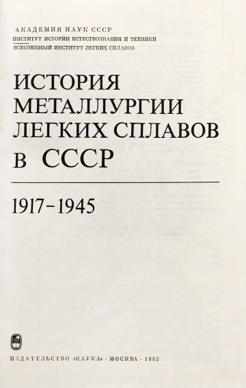 В книге рассматривается история металлургии легких сплавов в СССР от Великой Октябрьской Социалистической революции до победоносного завершения Великой Отечественной войны 1941-1945 гг. Показано становление металлургии легких сплавов в системе отечественного металлургического производства, специализация ее как отрасли металлургической промышленности. Освещены основные научно-технические направления создания высокоэффективных алюминиевых и магниевых сплавов и других материалов. Раскрыта деятельность отечественных ученых и специалистов-металлургов, работавших в области металлургии легких сплавов. Описаны свойства и характеристики основных легких сплавов, созданных в Советском Союзе до середины 40-х годов. Рассчитана на специалистов металлургической и авиационной промышленности, научных работников, историков науки и техники, преподавателей и студентов высших и средних специальных учебных заведений.