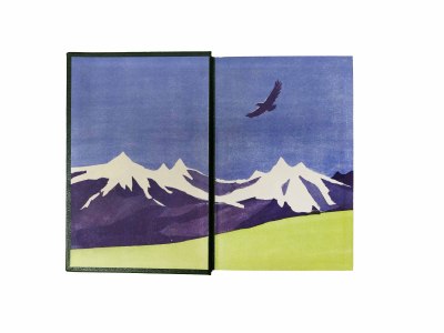 В цельнокожаном переплете ручной работы с тиснением золотом и иллюстрацией на передней крышке. Иллюстрированные форзацы.