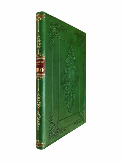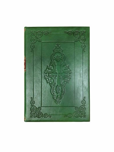В цельнокожаном переплете ручной работы с тиснением золотом.