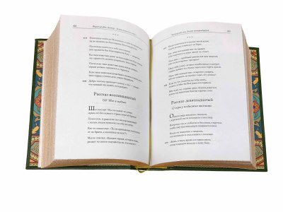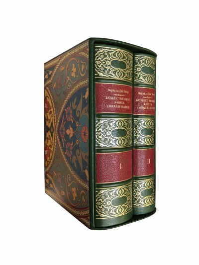 Каждый том в цельнокожаном переплете ручной работы с тиснением золотом. Иллюстрированные узорные форзацы и золотые обрезы. Подарочный футляр.