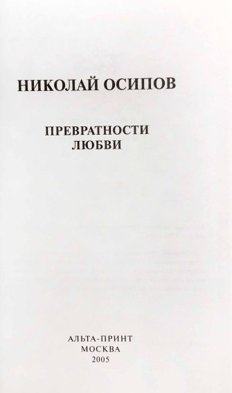 Сборник произведений одного из лучших русских поэтов второй половины XVIII века Н. П. Осипова включает в себя знаменитую пародию на поэму И. П. Богдановича «Душенька», а также стихотворения о превратностях любви, ставшие классическими образцами русской литературной эротики.
