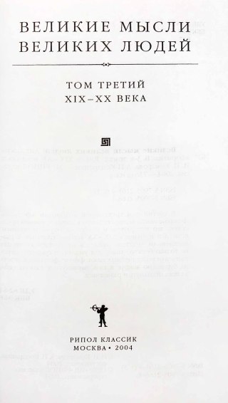 В третий том трехтомной антологии афоризма «Великие мысли великих людей» вошли изречения представителей литературы и искусства, науки и техники, политики и бизнеса XIX-XX веков.