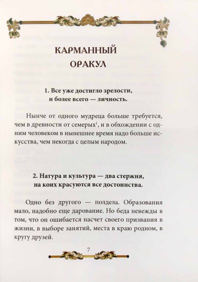 Первым знаменитым испанским писателем, с которым познакомился русский читатель, был Бальтасар Грасиан. В 1742 г. — задолго до первых русских публикаций Сервантеса — в Петербурге появился перевод его «Карманного оракула», выполненный неутомимым С. С. Волчковым, секретарем Академии наук. Афоризмы «Оракула», видимо, имели успех, так как в 1760 г. вышло второе издание. И хотя прямых упоминаний в русской литературе почти нет, они, надо думать, вошли в круг чтения любителей «мыслей мудрых людей» (Л. Толстой).