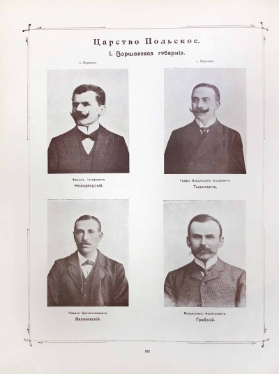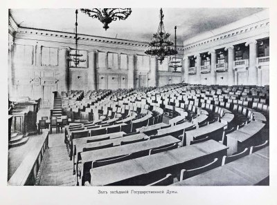Представители I Государственной думы Российской империи, которая просуществовала с 27 апреля по 8 июля 1906 года. Это был первый в России избранный населением представительный законосовещательный орган. Стал результатом попытки преобразовать Россию из самодержавной в парламентскую монархию, вызванной стремлением стабилизировать политическую обстановку в условиях многочисленных волнений и революционных выступлений. В состав думы было избрано 448 депутатов. По партийному составу они распределялись следующим образом: кадетов — 153, октябристов — 13, беспартийных — 105, крестьян-трудовиков — 107, «автономистов» (депутаты национальных окраин) — 63 и 7 — прочих.