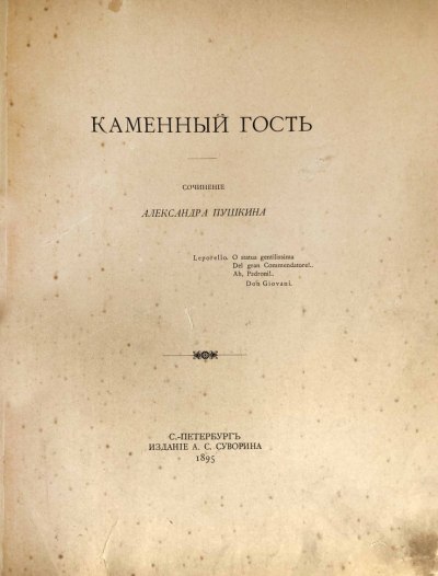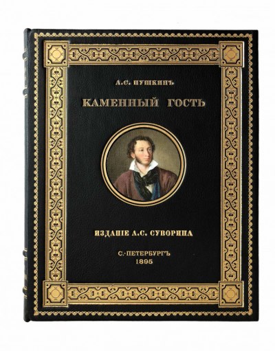 Подарочное иллюстрированное издание, отпечатанное на слоновой бумаге. Книга оформлена изящными иллюстрированными заставками, виньетками, концовками, выполненными художником С. С. Соломко. Одна из первых книг, оформленных С. С. Соломко (1867-1928). «Каменный гость» — пьеса из цикла «Маленькие трагедии» А.С. Пушкина, написанная в период «болдинской осени».