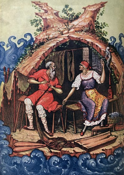 — Сказка о рыбаке и рыбке. Рисунки И. И. Зубкова.