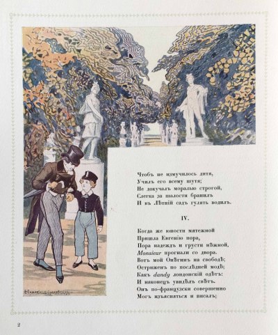 «Евгений Онегин» — роман в стихах русского писателя и поэта Александра Сергеевича Пушкина, написанный в 1823-1830 годах, одно из самых значительных произведений русской словесности. Повествование ведётся от имени безымянного автора, который представился добрым приятелем Онегина. По словам Белинского, Пушкин назвал «Евгения Онегина» романом в стихах, поскольку в нём изображена «жизнь во всей её прозаической действительности».
