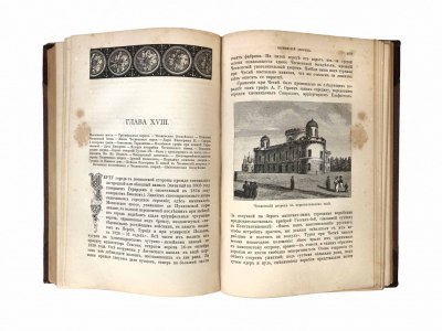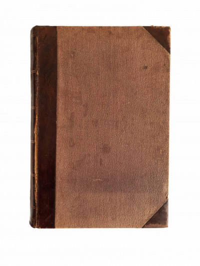 Книга в полукожаном владельческом переплете эпохи с золотым тиснением на корешке.