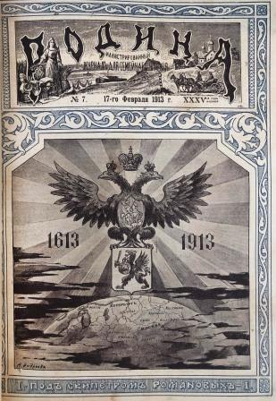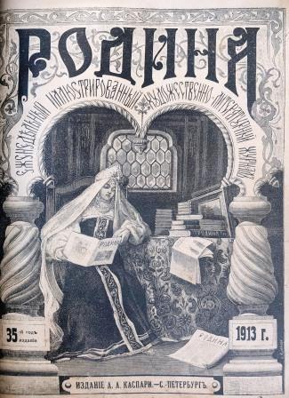 Полный комплект еженедельного иллюстрированного художественно-литературного журнала «Родина» за 1913 год. Комплект особо интересен тем, что в 1913 году проходили торжества по случаю 300-летия Дома Романовых, подробно освещавшиеся в журнале. Содержание журнала: стихотворения, беллетристика - рассказы, наброски, исторические очерки, сказки и пр. Журнал был основан в Санкт-Петербурге в 1879 г. На рубеже веков он стал самым распространенным русским иллюстрированным журналом после «Нивы».