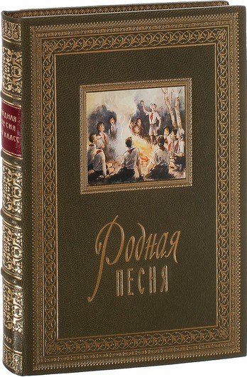 В цельнокожаном переплете ручной работы с тиснением золотом и иллюстрацией на передней крышке.