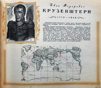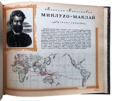 Альбом включает в себя рассказы о жизни и деятельности 42 выдающихся русских путешественниках и учёных географах. Среди знаменитых имен: А. Никитин, В. Беринг, С.П. Крашенинников, В. Прончищев, Д.и.Х. Лаптевы, М.В. Ломоносов, И.И. Лепехин, Н.Я. Озерецковский, И.Ф. Крузенштерн, Ю.Ф. Лисянский, В.М. Головнин, Ф.Ф. Беллинсгаузен многие другие. В альбоме впервые составлены и представлены карты маршрутов значительной части путешествий, которые оформлены художником-картографом А.А. Ульяновым. Портреты выполнены в технике гравюры на дереве художниками: Е. Голяховским, В. Смирновым, Ю. Ростовцевым, Н. Шевердяевым, А. Критской, П. Павлиновым. Переплет, титул и общее оформление листов Альбома выполнены художником Ю. М. Казмичевым.