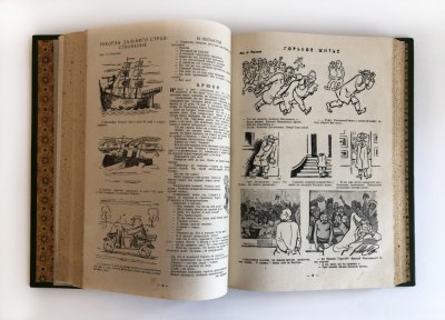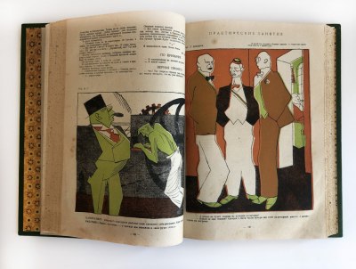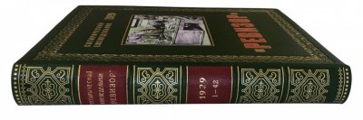 В цельнокожаном переплете ручной работы с тиснением золотом и иллюстрацией на передней крышке.