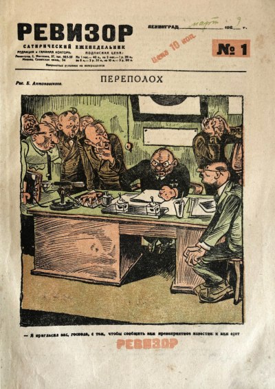 Сатирический журнал «Ревизор» выходил еженедельно в Ленинграде с марта 1929 г. по сентябрь 1930 г. как приложение «Красной газеты». Печатался обычно на 12 стр., с красочными иллюстрациями. Журнал состоял преимущественно из карикатур, сатирических стихов, фельетонов. «Ревизор» начал издаваться вместо другого приложения «Красной газеты» — газеты «Пушка». Закрытие журнала в 1930 году было связано с окончательным установлением государственного контроля над сатирой. С этого момента в стране, где прежде выходили десятки сатирических журналов (только в Ленинграде — «Бегемот», «Бузотер», «Пушка», «Ревизор»), остался только один сатирический журнал «Крокодил».
