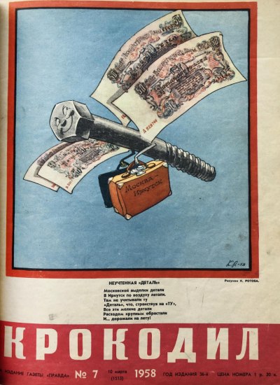 «Крокодил» — самый узнаваемый советский и российский сатирический журнал, основанный в 1922 году, как приложение к «Рабочей газете». В конце 20-х годов на собранные среди подписчиков журнала и его сотрудников средства был построен самолёт. С 1933 года — единственный всесоюзный сатирический журнал. Сатира «Крокодила» не ограничивалась мелкими бытовыми темами — разоблачениями бюрократов, пьяниц, взяточников, халтурщиков, стиляг, а также критикой некомпетентных руководителей среднего и низшего звена, она также отражала ключевые вопросы и центральные события внутренней и внешней политики.