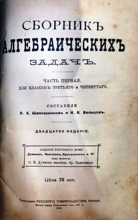 Один из классических дореволюционных учебников по математике, который не утратил своей актуальности и популярности в советское время. Его авторы — даровитые математики. Один из них — Николай Александрович Шапошников (1851-1920), известный российский ученый и педагог. Его заслуги отмечены в «Истории отечественной математики». Сборник включает основные алгебраические обозначения, действия над относительными числами, разложение на множители, дроби, возвышение в степень, уравнения первой степени, квадратные уравнения и другие задачи. Сборник представляет интерес для педагогов и историков науки.