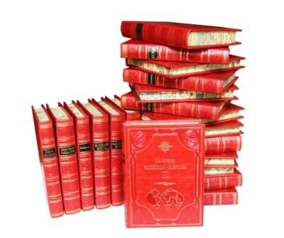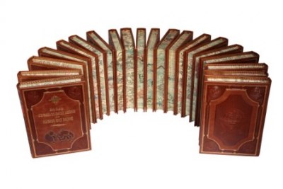 Каждый том в цельнокожаном переплете ручной работы с тиснением золотом