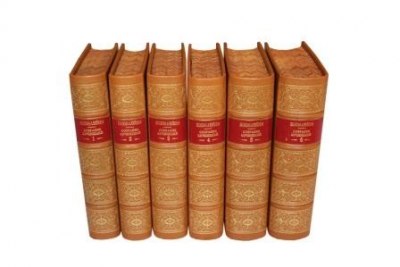 Каждый том в цельнокожаном переплете ручной работы с тиснением золотом.