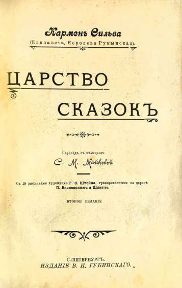 Кармен Сильва — литературный псевдоним румынской королевы Елизаветы. Яркие краски южной народной фантазии, святость долга и милосердие, воспеваемые автором, высокие и прекрасные чувства героев — всё это есть в умных, красивых сказках королевы Елизаветы.