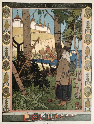 Иллюстрации И.Я.Билибина к русским сказкам и былинам воссоздают сказочный и фантастический мир русского фольклора.