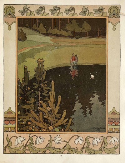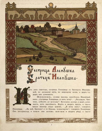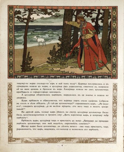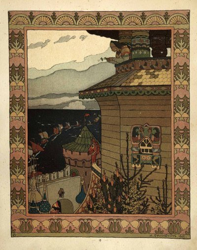 Иллюстрации И.Я.Билибина к русским сказкам и былинам воссоздают сказочный и фантастический мир русского фольклора.