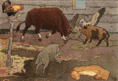В книгу входят два выпуска Сказкок старухи-говорухи о животных: "Зимовье зверей; Старая хлеб-соль забывается" и "Сказка о щуке зубастой. Петух, кот и баран. Заяц и лягушка." Цветные и тоновые иллюстрации к сказкам выполнены замечательными русскими художниками С.М.Дудиным и Н.И.Ткаченко. Дудин Самуил Мартынович — живописец, график и этнограф, в 1891-1897 годах учился у И.Е.Репина в Академии художеств. Ткаченко Николай Иванович — русский художник, живописец, график, иллюстратор.