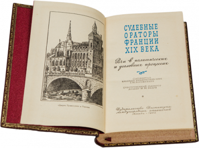 В книгу вошли десять речей виднейших судебных ораторов Франции XIX века: Лашо, Шэд‘Эст Анжа, Мано, Морнара, Дюпена, Лабори. Приводится письмо президенту Французской республики писателя Эмиля Золя «Я обвиняю». Наряду с речами по такому чрезвычайному по своему политическому значению делу, как дело Альфре-да Дрейфуса, в сборнике представлены речи, произнесенные по уголовным делам, возникавшим на чисто бытовой основе (знаменитые процессы Поммерэ, Ронсьера и др.). Речи, произнесенные в уголовных процессах, знакомят читателей с жизнью и бы-том различных слоев французского общества того времени. По некоторым процессам, помимо речей защитников, дается речь обвинителя, обмен репликами прокурора и адвоката. В сборнике даются необходимые справочные материалы и поясни-тельные тексты. Приведена общая характеристика французского суда присяжных и судебного красноречия Франции. В красном цельнокожаном переплете ручной работы с тиснением золотом. Обрез красного крапления. Красное тонкое шелковое ляссе