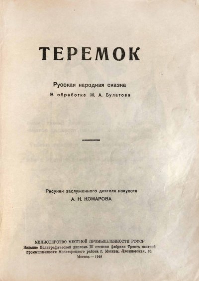 М.: Мин. местной промышленности РСФСР, 1948 г. Рисунки заслуженного деятеля искусств А.Н. Комарова. В обработке М. А. Булатова.