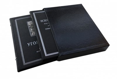 Книги в футляре. Каждая книга в цельнокожаном переплете ручной работы с серебряным тиснением.