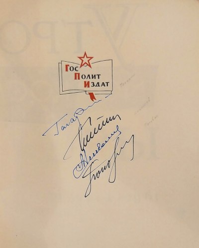 Автографы космонавтов: Ю. Гагарина, Г. Титова, В.Терешковой, П. Поповича.