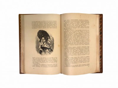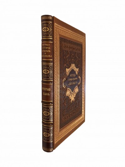 Книга в цельнокожаном переплете ручной работы с тиснением золотом на передней крышке и корешке.