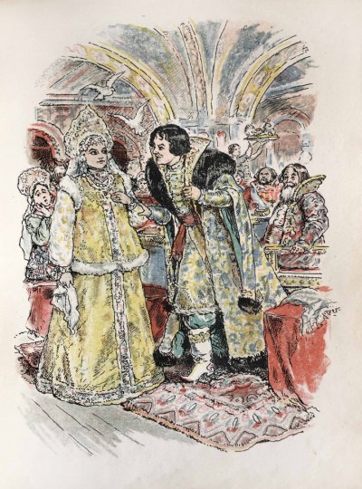А. А. Давыдова (1888-1963) училась в Киевской рисовальной школе у Н.И. Мурашко, в Киевском художественном училище у Н.К. Пимоненко и И.Ф. Селезнева, в Москве в студии К.Ф. Юона, училась в Мюнхене, Дрездене, Риме. В 1935 году начинает работать как профессиональный художник-иллюстратор детской литературы. Она прекрасно проиллюстрировала эту русскую народную сказку. Книга оформлена орнаментами и иллюстрациями со знанием национальных костюмов, в мягкой цветовой палитре.