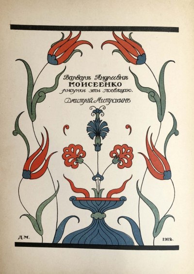 Митрохин Дмитрий Исидорович (1883-1973) —русский художник, мастер книжной и станковой графики. Рисовал в разных техниках, признан мастером ксилографии. В искусстве книги особое внимание уделял не полосным иллюстрациям, а всему орнаментально-ритмическому комплексу обложки, форзацам, титульному листу, заставкам, концовкам и пр., филигранно вырисовывая каждый элемент, мастерски выдерживая общий стиль книги.