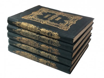 Книги в цельнокожаном переплете ручной работы с тиснением золотом на передней крышке и корешке. Отличная сохранность.