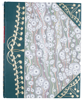 В полукожаном переплете конца XX века. Крышки оклеены «мраморной» бумагой. Корешок из зеленой кожи.
