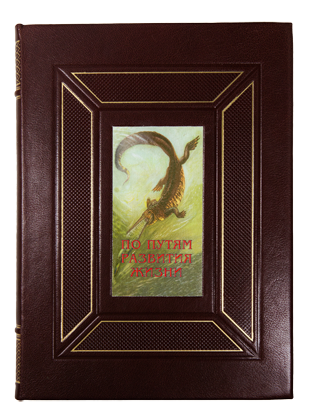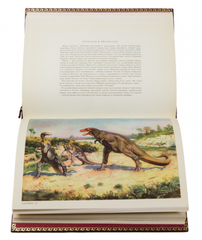 Книга профессора Йозефа Аугуста знакомит нас с древней историей флоры и фауны Земли. Вместе с автором мы проходим по пути развития растений и животных, начиная от первичных, примитивных форм и кон-чая жизнью первобытного человека периода позднего палеолита. Перед воображением читателя встают кар-тины прошлого нашей планеты. В книге приведены названия растений и животных и их изображения, а также изложена сама теория эволюции. Помещенные в книге 60 полностраничных цветных иллюстраций древних животных и растений художника Зденека Буриана являются результатом долголетней совместной работы художника и ученого-палеонтолога. В этих иллюстрациях научная точность сочетается с художественным совершенством. В коричневом цельнокожаном переплете ручной работы с тиснением золотом и иллюстрацией на передней крышке. Обрез коричневого крапления. Коричневое тонкое шелковое ляссе