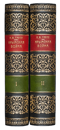 Фундаментальный исторический труд о Крымской войне (1853 –1856), которая велась между Российской империей, с одной стороны, и коалицией в составе Британской, Французской, Османской империй и Сардинского королевства, с другой. Боевые действия разворачивались на Кавказе, на Балтийском, Черном, Азовском, Белом и Баренцевом морях, а также на Камчатке. Наибольшего напряжения они достигли в Крыму. Россия проиграла войну. Использовав огромный архивный и печатный материал, автор показал сложный клубок международных противоречий, который сложился в Европе и Малой Азии к середине XIX века. Приводя доказательства агрессивности планов западных держав и России на Ближнем Востоке, историк рассмотрел их экономические позиции в этом районе, отмечая решительное расхождение интересов в первую очередь Англии и Австрии с политикой России. В труде детально выяснена за-кулисная дипломатическая борьба враждующих сторон, из которой Англия и Франция вышли победителями. В то же время показаны разногласия между этими державами. Много нового автор внес в описание военных действий. Тарле останавливается и на значении войны как пролога к переменам внутри России. Евгений Викторович Тарле (1875 –1955) — известный российский историк, академик АН СССР. Каждый том в синем цельнокожаном переплете ручной работы с тиснением золотом. Синий тонированный обрез. Синее тонкое шелковое ляссе