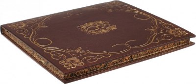 В цельнокожаном переплете ручной работы с тиснением золотом.