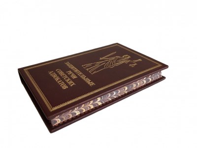 В коричневом цельнокожаном переплете ручной работы с тиснением золотом. Обрез коричневого крапления. Коричневое тонкое шелковое ляссе.