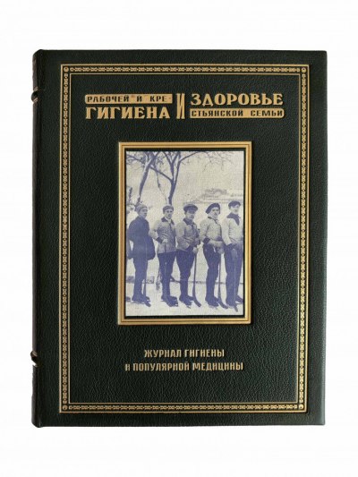 Книга в цельнокожаном переплете ручной работы с тиснением золотом и иллюстрацией на передней крышке. Иллюстрированные форзацы. Цветные иллюстрированные обложки сохранены в переплете.