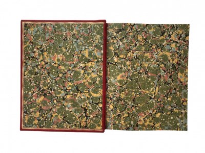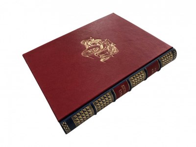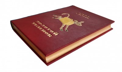 Книга в цельнокожаном переплете ручной работы с тиснением золотом. Дизайнерские форзацы. Обрез золотой.